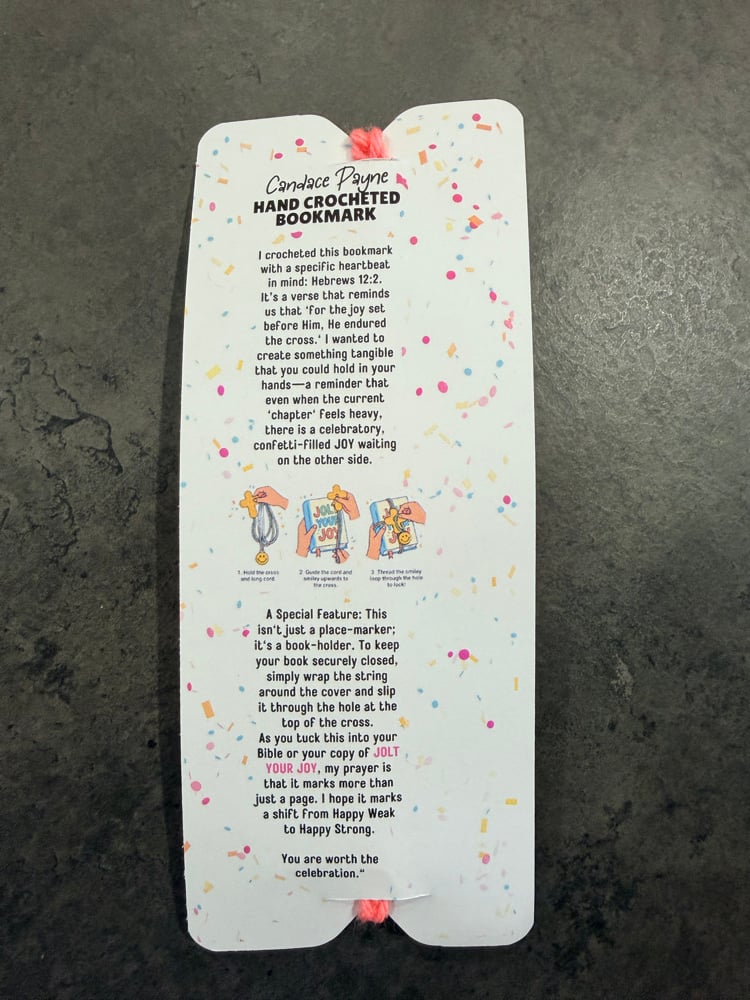 As you tuck this into your Bible or your copy of JOLT YOUR JOY, my prayer is that it marks more than just a page. I hope it marks a shift from Happy Weak to Happy Strong.